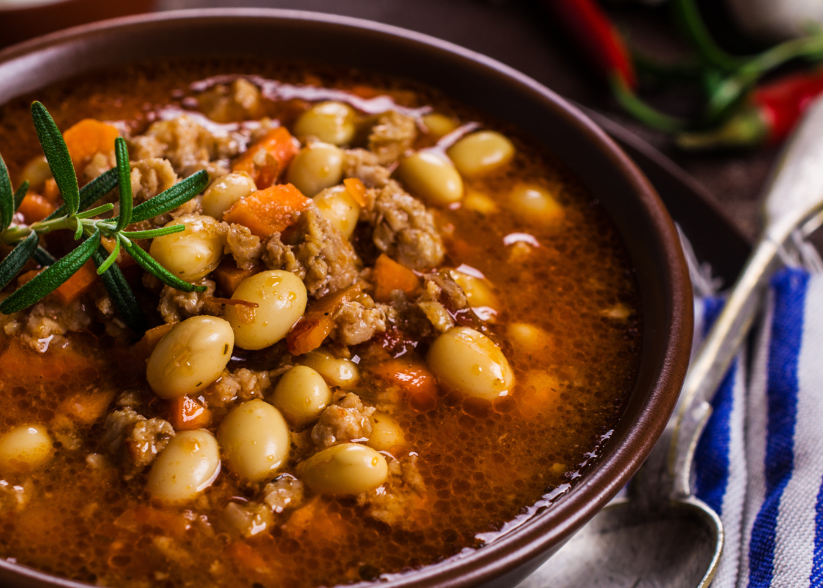 Суп отличается густой текстурой, в которой гармонично сочетаются говяжий фарш и ароматные специи, характерные для Кавказской кухни. Он сытный, наваристый и согревает душу. Используя консервированную фасоль, время приготовления сокращается до 40-45 минут.