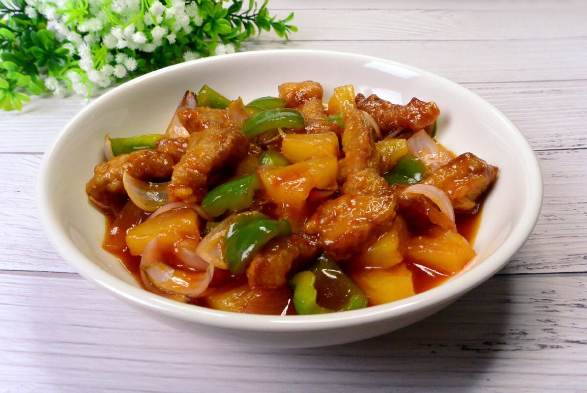 Это кулинарное творение идеально подойдёт для любителей контрастов во вкусе. Свинина становится невероятно нежной, а ананас придаёт сладко-кислый вкус и сочность. Сладко-кислый соус добавляет индивидуальность каждому кусочку.