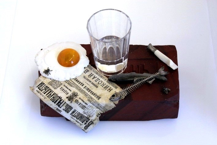 В 2011 году Музей Фаберже, расположенный в живописном Баден-Бадене, пополнился интересной скульптурной композицией, якобы созданной именитой фирмой. Этот проект, известный под названием «Пролетарский завтрак», включает в себя гранёный хрустальный стакан, кварцевый окурок, глазунью из янтаря и камня, а также серебряную муху и рыбу. В дополнение, к композиции приложили газету с императорским манифестом 1905 года, выложенную на кирпиче из красной яшмы. Сообщается, что приобретение оценивается в $1,1 миллиона, однако музей не уточнил стоимость на своем сайте, лишь выразив гордость за поступление этого «авангардного» шедевра.