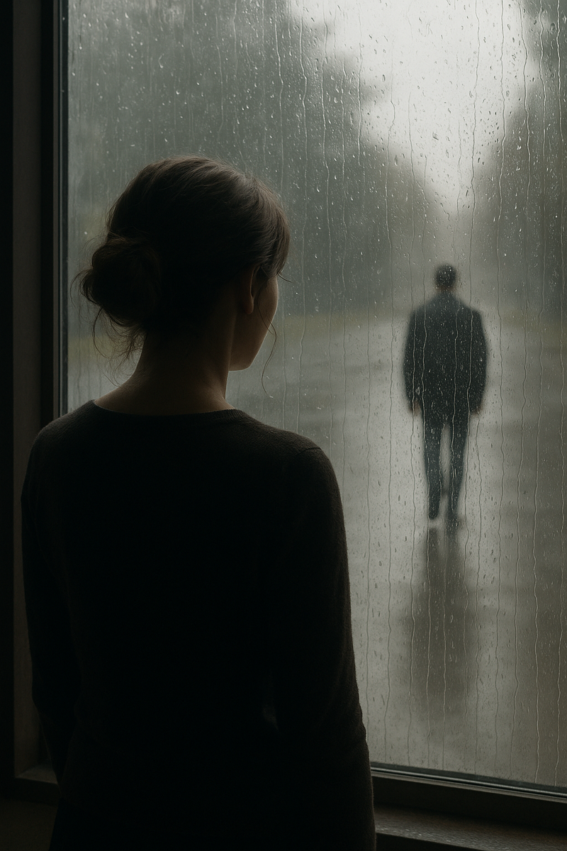 Она посмотрела в окно, как его силуэт исчезает под дождём, и поняла: иногда любовь не умирает, она просто превращается в доброту — тихую и зрелую, без надежды на возвращение.