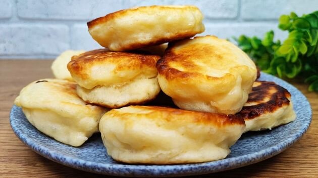 Раскатываем тесто до толщины 1 см и вырезаем кружки для пышек. Жарим их на растительном масле до золотистой корочки, по 2-3 минуты с каждой стороны. Подавайте со сметаной или вареньем — вкус безумно приятный!