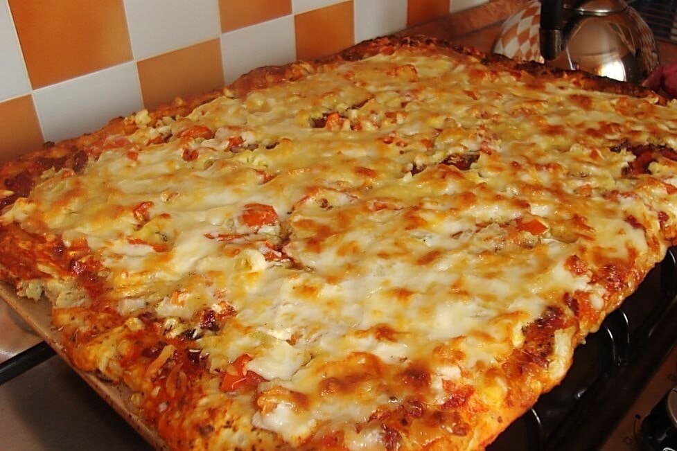 Вот и всё! Быстрая пицца на противне готова, наслаждайтесь великолепным вкусом и простотой приготовления. Приятного аппетита!