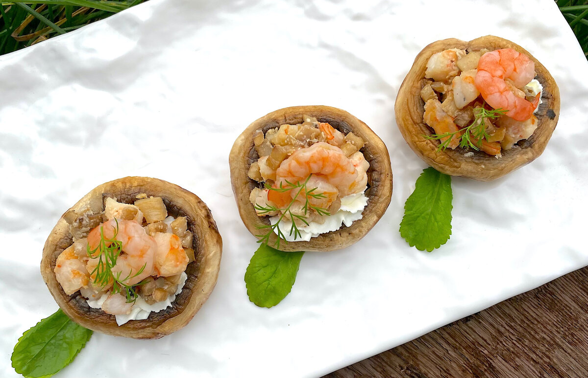 Начинкой заполняются остывшие шляпки, и закуска готова к подаче!