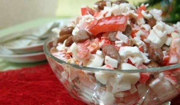 1. Начните с нарезки крабовых палочек и помидоров на мелкие кусочки. Это поможет им равномерно впитаться в общий вкус салата.