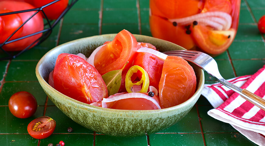 Для того чтобы наслаждаться летним вкусом в холодные дни, достаточно будет добавить к готовым помидорам любимые ингредиенты: лук, зелень или чеснок. Однако важно помнить, что помидорные дольки необходимо заливать маринадом или рассолом в правильной пропорции: на 1 литр воды потребуется 20-25 г соли.