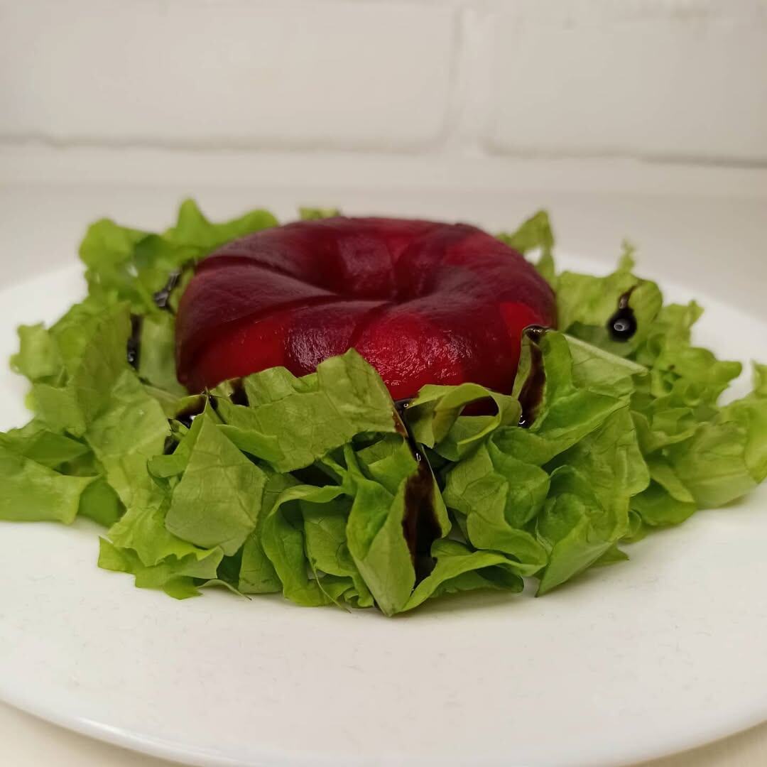 Пора завершить выходные не просто обычным блюдами, а настоящим шедевром! Яркая свекла, нежный творожный сыр, хрустящие листья салата и сладковато-кислый бальзамический крем — всё это соединено в одном круглом «пончике». Даже те, кто не любит зелень, не смогут устоять перед этой красотой. Этот удивительный салат моментально исчезает со стола — и не без причин!