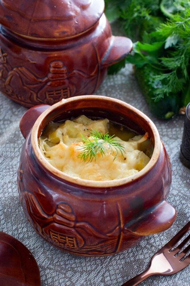 За 5-7 минут до готовности стоит открыть горшочки и добавить натертый на крупной терке сыр для формирования аппетитной румяной корочки.