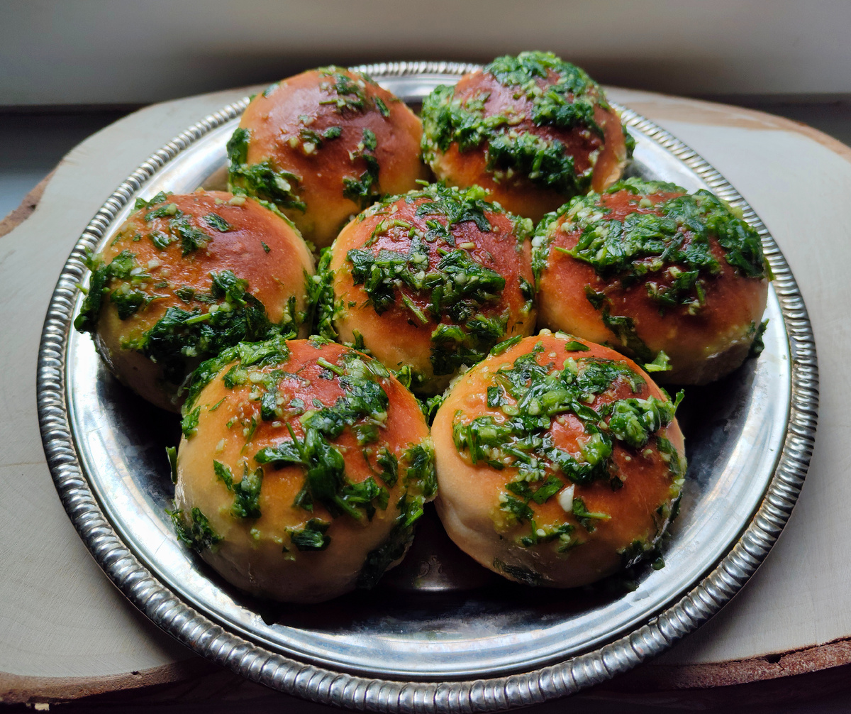 Как только булочки будут готовы, сразу полейте их чесночным маслом и дайте немного остыть, чтобы пампушки впитали ароматы.