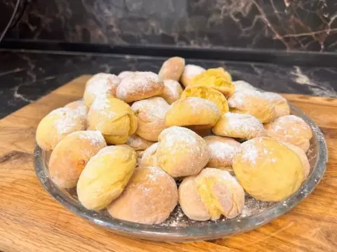 Раскатайте тесто до thickness около 1 см и вырежьте печенье формочками или сформируйте небольшие шарики вручную.