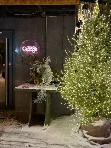 Тем, кто ищет необычные места для отдыха, стоит обратить внимание на этот ресторан. Войдя внутрь, гостей встречает яркая елка, выполненная из бутылок, которая сразу намекает на впечатляющую винную карту заведения. Внутреннее убранство заведения включает стены, украшенные пустыми бутылками и художественные элементы, создающие уникальную атмосферу. Здесь можно не только пообедать, но и насладиться чтением интересных книг, разбросанных по всей территории.