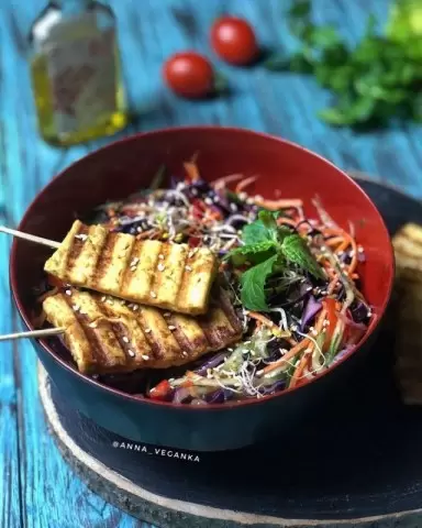 Когда встает вопрос о том, чем порадовать себя в пост, стоит обратить внимание на этот яркий и насыщенный вариант — салат с тофу сатай и свежими овощами, подготовленный с пряной заправкой.