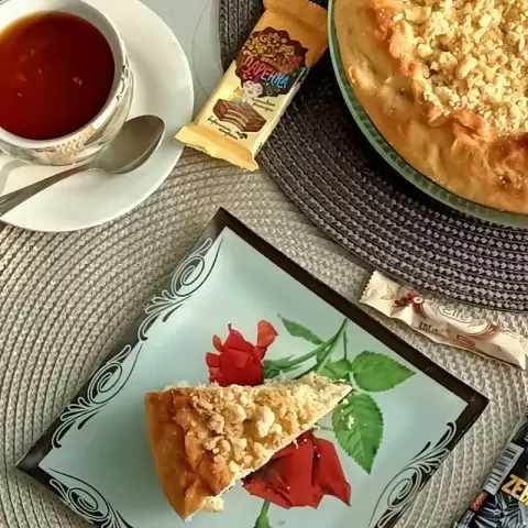 Налейте чашку ароматного чая и наслаждайтесь этим вкусным пирогом!