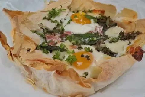 Сначала необходимо подготовить все ингредиенты. Овощи и зелень тщательно вымыть и очистить.Затем следует взять форму для запекания, выстелить ее пергаментом и разместить в ней лаваш.Добавить подсолнечное масло, равномерно распределив его по лавашу.Лук нарезать соломкой и выложить в форму.Сладкий перец также нарезать соломкой и добавить в форму к луку.Помидоры сделать небольшие надрезы и опустить в кипяток на минуту, чтобы облегчить процесс очистки.После этого удалить кожицу от помидоров, нарезать их кубиками и добавить в форму.Вместе с помидорами добавить сметану, приправу для плова, а также немного соли.Внутри овощной смеси сделать небольшие углубления и аккуратно вбить туда яйца. Посолить по вкусу.Брынзу нарезать крупными кусочками и равномерно распределить по поверхности.Накрыть все пергаментом, но не плотно, и отправить в духовку, разогретую до 180 градусов, на 10 минут.Шакшука будет готова, когда яйца достигнут нужной консистенции.Соблюдая этот простой и быстрый рецепт, можно создать неповторимый завтрак, который порадует всех членов семьи. Приятного аппетита!