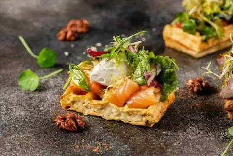 Лосось в сочетании с легкой картофельной вафлей и сливочным сыром – идеальный вариант для закуски, который порадует как гурманов, так и любителей домашней кухни.