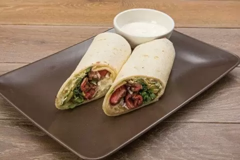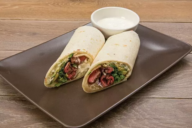 Заверните лепешки, и ваш стейк ролл с авокадо готов. Подавайте его с оставшимся соусом для максимального наслаждения!