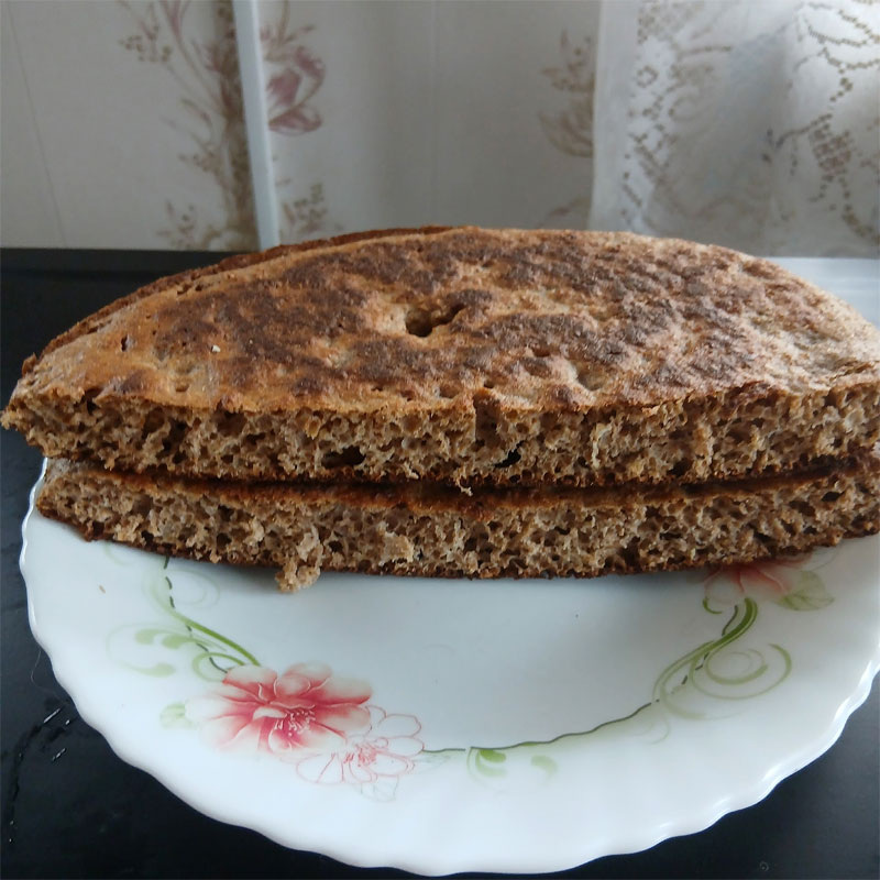 Смешайте все перечисленные ингредиенты до получения однородного теста. Для выпекания идеальна сковорода без масла, где необходимо готовить блин под крышкой на небольшом огне.