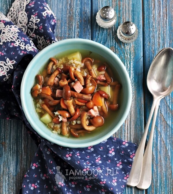 - Грибной суп из опят с ветчиной и картошкой: Легкий и сытный суп, который обогатит ваш обед. Для него понадобятся замороженные опята, картофель, ветчина и несколько ароматных приправ.