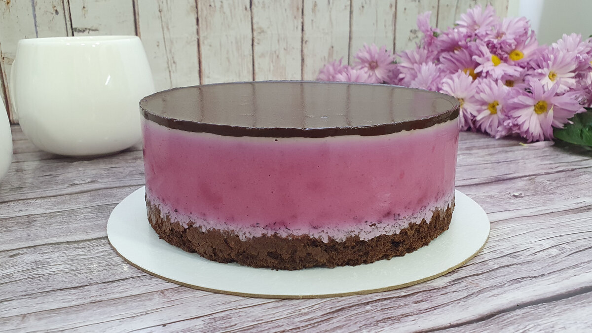 8. Снимите кольцо и ацетатную пленку с готового торта, нарежьте его на порции и подавайте. Приятного аппетита!