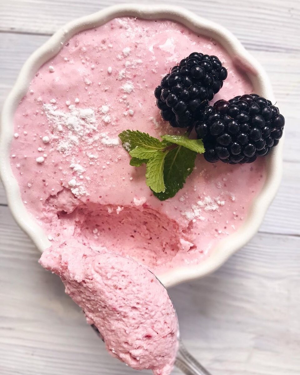 Ягоды следует хорошо измельчить в блендере. Если вы используете замороженные, их лучше немного разморозить перед этим.