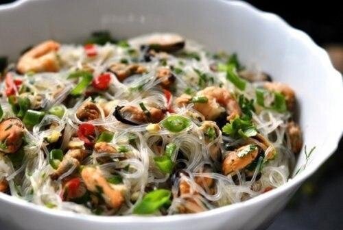 Салат из фунчозы с морепродуктами: вкус корейской кухни