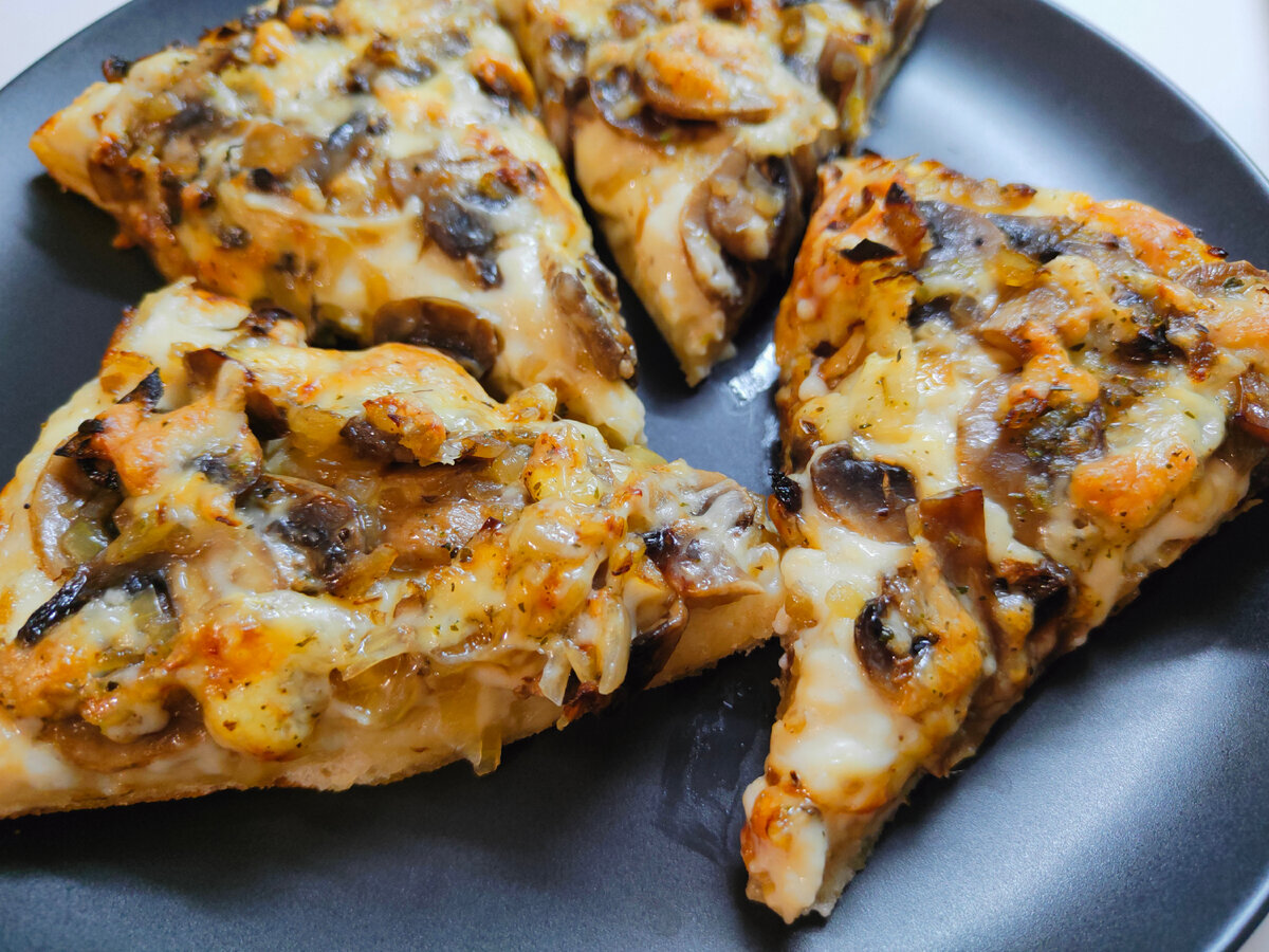 Эта пицца с жюльеном станет прекрасным дополнением к любому столу! Нежный вкус грибов в сочетании с соусом и сыром приятно удивит всех!
