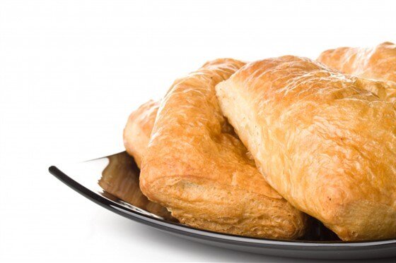 В глубокой миске соединить муку с растопленным сливочным маслом, после чего добавить воду и коньяк (либо ром), тщательно замесить тесто.В отдельной тарелке смешать творог с сахаром, яйцами, крахмалом, сливками и лимонной цедрой до получения однородной массы.Раскатать тесто в большой прямоугольный пласт, нарезать его на небольшие квадраты. В центр каждого квадрата положить творожную начинку, затем защипнуть углы. Смазать пирожки взбитым яйцом и выпекать в духовке до появления румяной корочки. Готовые пирожки рекомендуется посыпать сахарной пудрой для завершения.