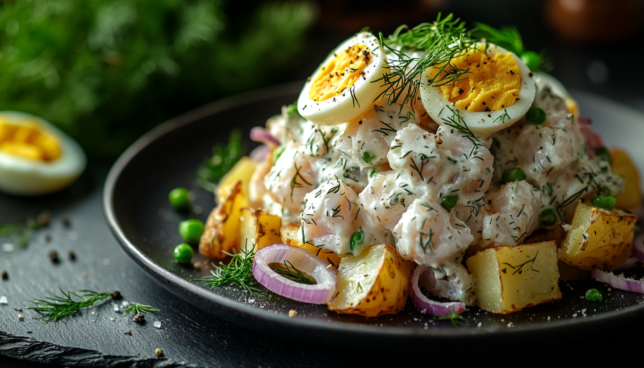 Следующий шаг — подготовка заправки. Смешайте сметану с горчицей, добавьте сок лимона и рубленый укроп. Это сочетание станет настоящей душой вашего салата!