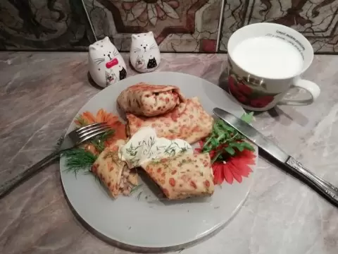 Сегодня особое внимание уделим заварным блинам с начинкой из мяса и риса. Эти блины не только просты в приготовлении, но и порадуют ваших близких уникальным вкусом. На процесс приготовления уйдет всего час.