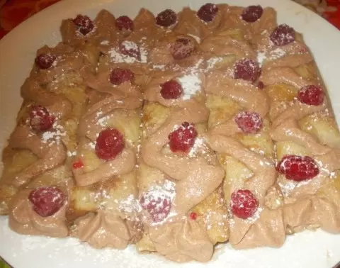 Готовые блины аккуратно оформляют на тарелке, посыпая их сахарной пудрой. На каждый блин выкладывают щедрую порцию крема и сворачивают их в трубочки. В качестве финального штриха блюдо украшают дополнительным кремом и свежими ягодами, придавая ему яркий и аппетитный вид. Такое лакомство обязательно понравится всем любителям сладкого!