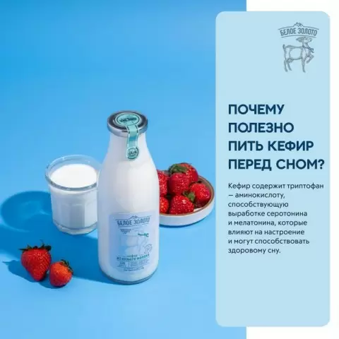 Ночью наш организм не должен расходовать излишнюю энергию на переваривание тяжелой пищи. В отличие от коровьего, козий кефир не содержит аллергенного белка A1, а его жировые глобулы в пять раз мельче, что делает его усвоение намного более легким.