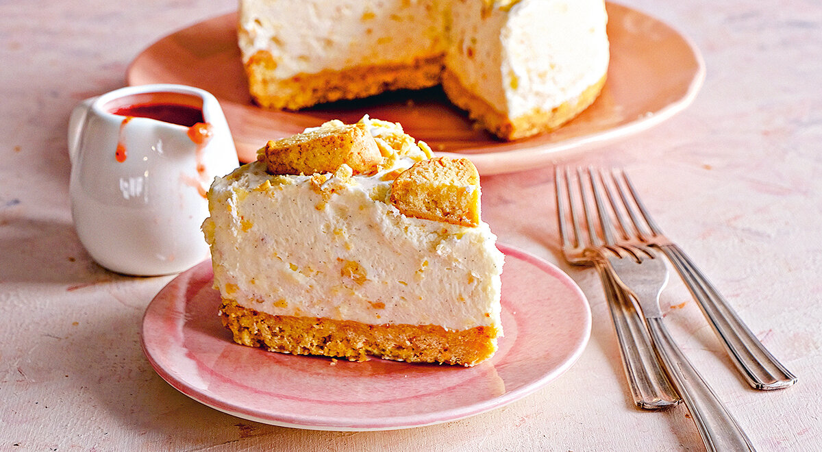 Шаг 6: Вылейте сливочную массу в форму, выровняйте верх и украсьте оставшимся печеньем. Уберите в холодильник на 4 часа или оставьте на ночь.