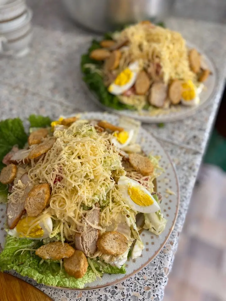 Эта светлая и свежая версия дарит новый оттенок знакомому блюду. К нежному салату добавляется авокадо, которое придаёт кремовую текстуру и обогащает блюдо полезными жирами. Не упустите возможность использовать качественный соус "Цезарь" для завершения вкусового акцента.